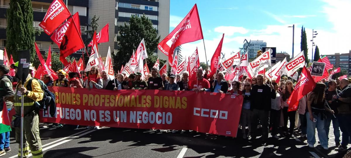Gran manifestación estatal para exigir mejores condiciones laborales para los bomberos y bomberas forestales y agentes medioambientales.